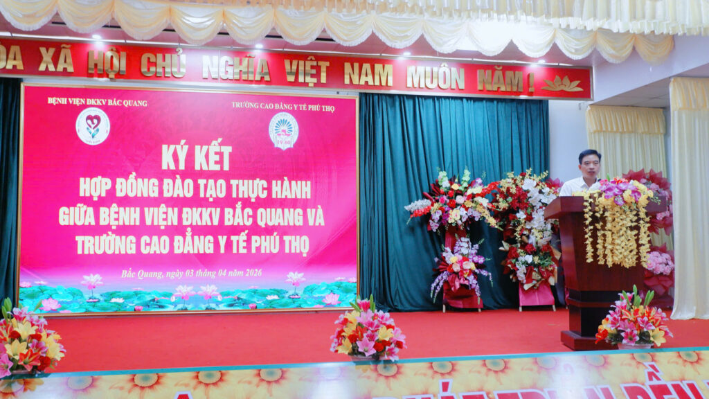 Sáng ngày 03/4/2026, tại Bệnh viện Đa khoa khu vực Bắc Quang, lễ ký kết hợp đồng đào tạo thực hành giữa Bệnh viện ĐKKV Bắc Quang và Trường Cao đẳng Y tế Phú Thọ đã được tổ chức trang trọng, đánh dấu một bước tiến quan trọng trong mối quan hệ hợp tác giữa cơ sở đào tạo và đơn vị y tế tuyến cơ sở.